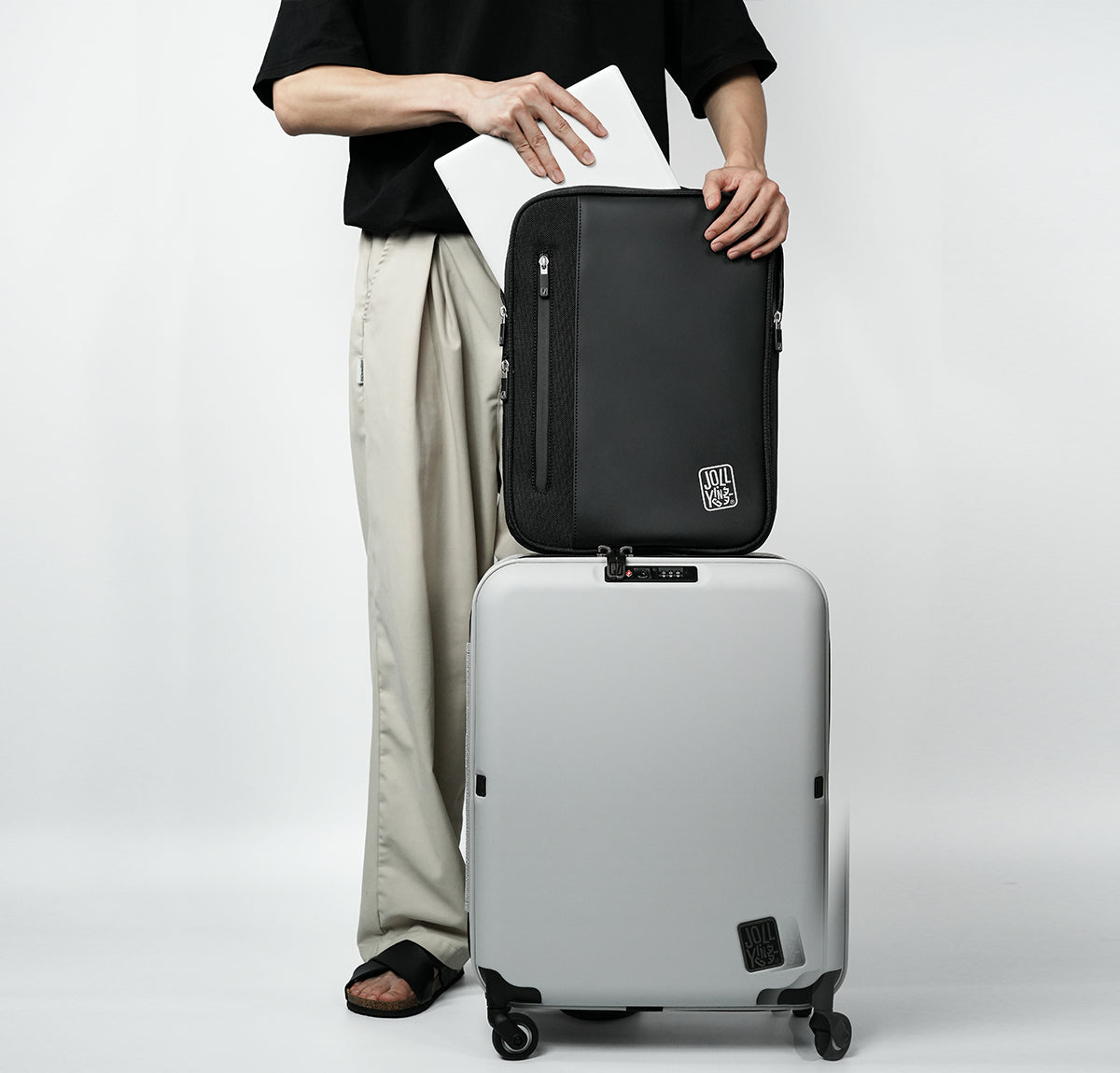PEBBLE 20'' PRO include a 20'' lite suitcase and a briefcase. The briefcase not only can be hung on the pull rod but also can be hung on the suitcase by magnetic suction and there is also a safety strap to prevent theft and fall. It's one of the best luggage for travel.