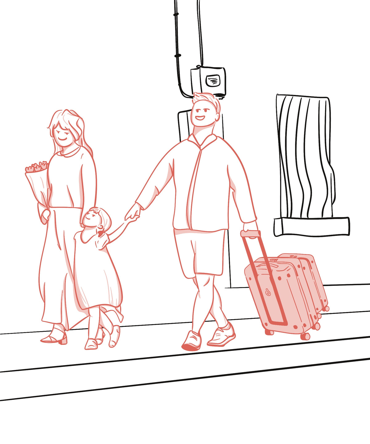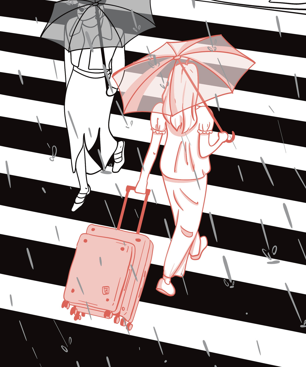 Thanks to its innovative design, you can easily connect a large and small suitcase into one and pull them with just one hand, leaving your other hand free to hold an umbrella.