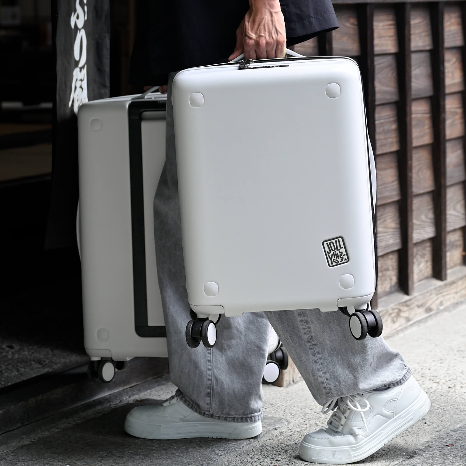 With JOLLYING’s patented magnetic buckle, you can instantly connect a small and a large suitcase with a single touch. The two cases move together as if they were one, allowing you to steer them effortlessly with just one hand.